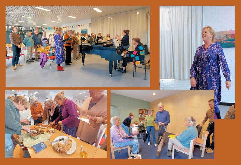 Om zo zuiver mogelijk te zingen tijdens ons optreden van 12 oktober 2025 hadden we daarvoor een extra repetitie op zaterdagmiddag. Helemaal leuk, omdat Gesina jarig was èn er een aantal dames heerlijke versnaperingen hadden gemaakt. Vol vertrouwen en enthousiasme konden we daarna uitkijken naar ons optreden in het Witte Kerkje in Terheijden.
